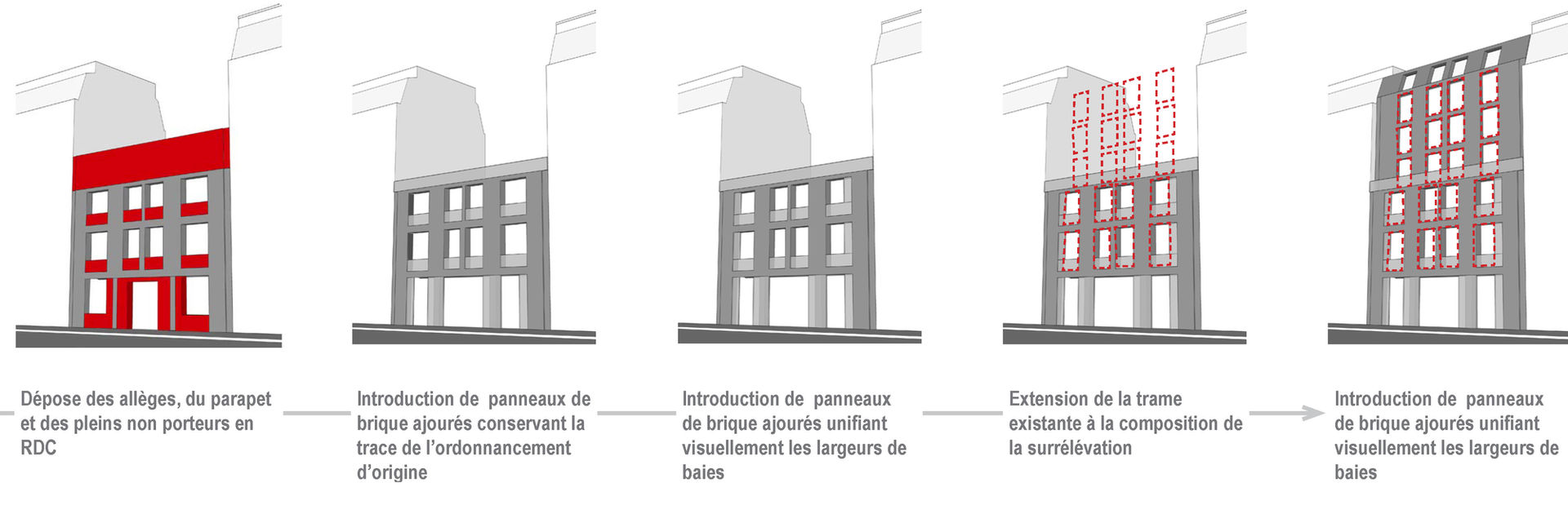 La surélévation et la réfection de la façade existante sont traitées de manière identique et